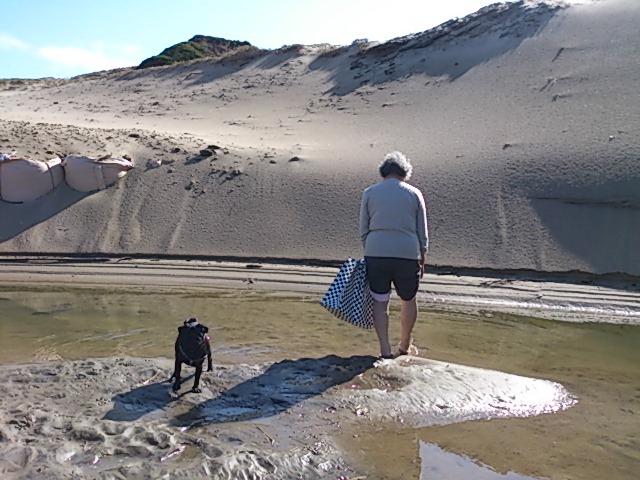 砂丘を昇ります。トントンは水が苦手で川を渡れません。