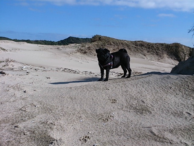 今日のロッタちゃん。砂浜を駆け回り、どや顔。